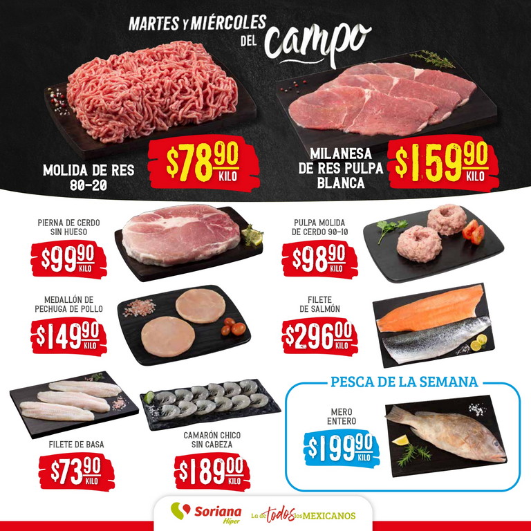 - Milanesa de res pulpa blanca a $159.90 el kilo.
